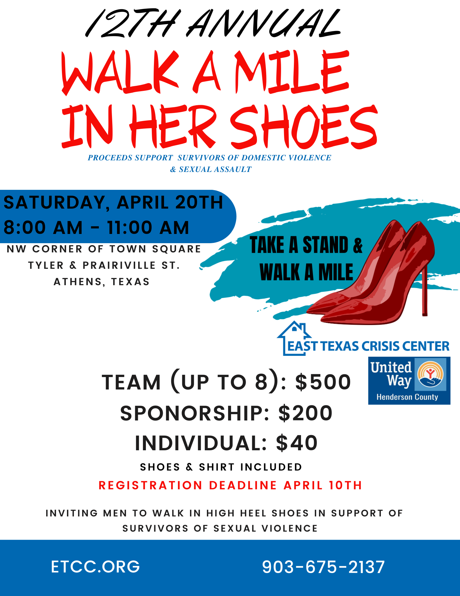 Inviting men to walk in high heel shoes in support of survivors of sexual violence. Proceeds support survivors of domestic violence & sexual assault.